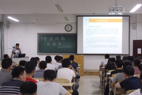 6月4日晚7点半,机电工程学院在9教405举办2017学年专升本交流会,此次大会由学习部组织,由2015级辅导员纪建茂老师主持本次交流会,2014和2015级专科学生参加。