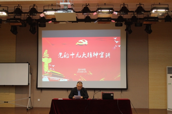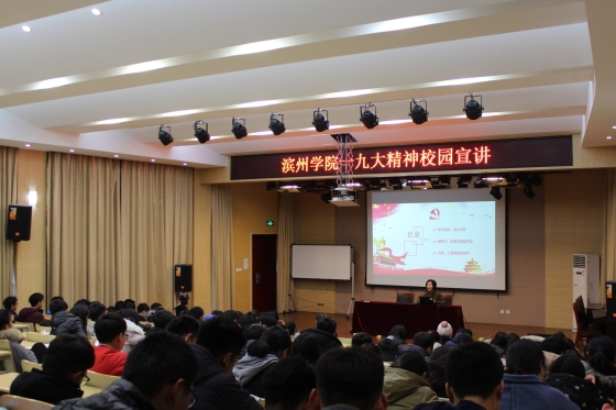 1月5日晚7点半,我院于4教308参加滨州学院党的十九大精神校园宣讲会,本次报告会由人文学院韩安庄老师主持,外国语学院苏成荣老师和化学与安全学院张丛丛老师主讲,辅导员宋立军老师出席本次宣讲会,我院部分同学到场聆听学习。