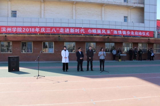 3月8日下午2点40,我院于学校田径场参加滨州学院2018年庆三八“走进新时代,巾帼展风采”激情健步走启动仪式,我院院长李宏伟带领全体女教师参加。