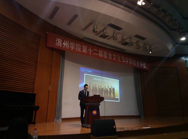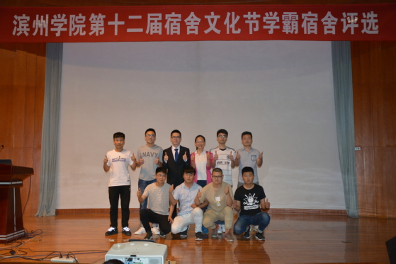 学校第二报告厅,厅内霓虹闪耀,掌声雷动,现场欢呼声一片。原来,有一个学院住了10名同学竟有9名同学考取了硕士研究生的宿舍被大家所熟知,在近四年的大学时光中,这个宿舍取得了近200张获奖证书,在场观众无不为之震撼,这个宿舍就是滨州学院学生公寓11号楼4楼活动室。它原本是机电工程学院一个再普通不过的宿舍,但是在第十二届宿舍文化节“最牛学霸宿舍”评选现场却高调亮相,凭全场最高分一战成名,成为全校公认的最牛学霸宿舍!