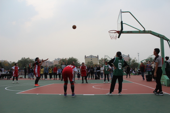 比赛准备阶段,队员们迅速投入了训练状态,本次比赛为四强晋级赛,对我院女篮来说至关重要,她们势在必得。随着裁判的一声哨响,比赛正式开始!身着红色球衣的我院队员拼抢积极,传球果断,创造了许多上半场进球的机会。伴着观众们热情的呐喊声,她们满怀信心,势不可挡。我院33号张晓蓉同学一人牵制半场,6号朱欣茹同学主动跑位迎球上篮,打出绝妙的配合得分,上半场我院暂时领先。下半场双方队员拉开激烈角逐,比分交替上升,我院采取防守反击战略来缓冲队员们因体力不支带来的影响,7号孔莉莉同学贴身防守,3号秦廷廷同学精彩控球都获得了不错的效果。比赛进入最后关键时刻,全场加油助威声不断,都咬紧牙关,尽力抓住机会,我院队员严阵以待,扩大比分优势。最终随着比赛结束的哨音吹响,我院以20:16的成绩战胜对手,队员们互相拥抱,呐喊助威。本次比赛到此结束。