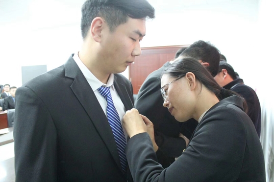 本次宣誓仪式以“不忘初心薪火相传庄严宣誓砥砺前行”为主题,由支部书记靳雪银主持,支部54名党员参加。仪式在庄严的国际歌中拉开帷幕,支部书记靳雪银首先向全体党员宣布了学校党委对我校今年学生党员发展工作的审批情况,宣传委员纪建茂宣读了审议批准的机电工程学院40名预备党员名单;接下来,支部老党员为新党员依次佩戴党徽,叮嘱新党员牢记入党誓词,时刻以共产党员的标准严格要求自己;随后,在支部书记靳雪银的带领下,老党员重温入党誓词,新党员进行了庄严隆重的入党宣誓;随后,组织委员宋立军代表支部向全体党员提出了明确要求与殷切希望,他指出:形式上入党一生一次,但思想上入党一生一世,全体学生党员应当牢记入党誓词,结合正在开展的“不忘初心、牢记使命”主题教育,不忘初心,砥砺前行,做讲规矩、守纪律、有品行的模范,为学院、学校建设发展增光添彩。