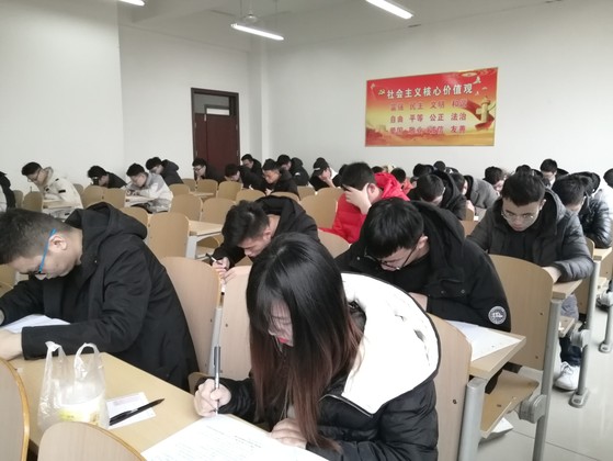 同学们都提前进入考场积极备考、认真准备。考试开始前同学们统一上交手机、课本等与考试无关的东西,认真遵守考试纪律。九点准时开考,学习部干事一一分发试卷,考生们拿到试卷后迅速进入答题状态,考生们仔细审题,在试卷上书写答案,只听见考场中沙沙的答题声,同时学习部的干事们流动巡查,保证考场纪律。考试过程中,同学们一丝不苟地作答,希望能够用这次模拟考试来更加深入的了解自己的优点以及不足。本次模拟考试严格按照真正考试时的流程进行,是为了提前让同学们感受一下考场的氛围,在考试时能够完全发挥出自己的实力,尽量避免因过度紧张而造成的发挥失常现象的出现。考试结束后,全体同学放下笔并停止作答,等待学习部干事们收考卷及答题纸。最后在学习部干事们的引导下有序离开考场。