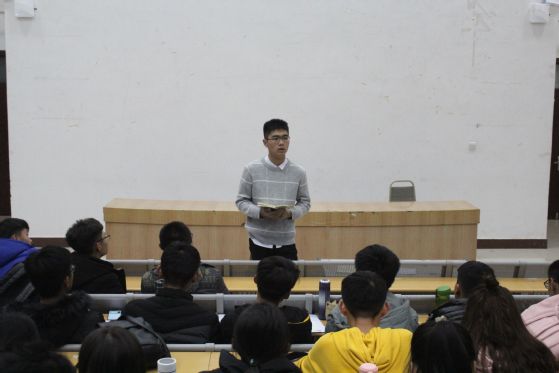 会议初始,张义壮首先为同学们介绍了SRTP项目的详细内容,讲到了SRTP是本科生科研训练计划英语简称,是一种为在校学生设计的科研项目资助计划。还讲到SRTP采取项目化的运作模式,并通过设立创新基金和同学们自主申报的方式确定立项并给予以资金支持。随后,张义壮结合自身的大赛经历评析了接手SRTP项目的优势,以幽默诙谐的方式提到同学们参与SRTP的过程本质上是在进行研究性学习,注重参与研究的学习过程,而并非期望同学们创造出多少原创性成果。最后,张义壮以“证书具有一时的实效性,唯有能力长远”结尾,赢得了全场的掌声,点燃了同学们加入SRTP项目的热情。