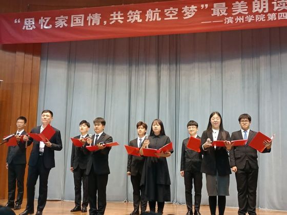为了宣传学校航空特色办学成就、营造校园航空文化氛围、建设校园航空文化阵地,12月8日下午3点30分,学院于五百人礼堂参加滨州学院第四届航空文化节“思忆家国情,共筑航空梦”最美朗读者活动。此次活动由学院辅导员刘云龙、韩娇娇两位老师及王修博、高浩然等七名同学参加。