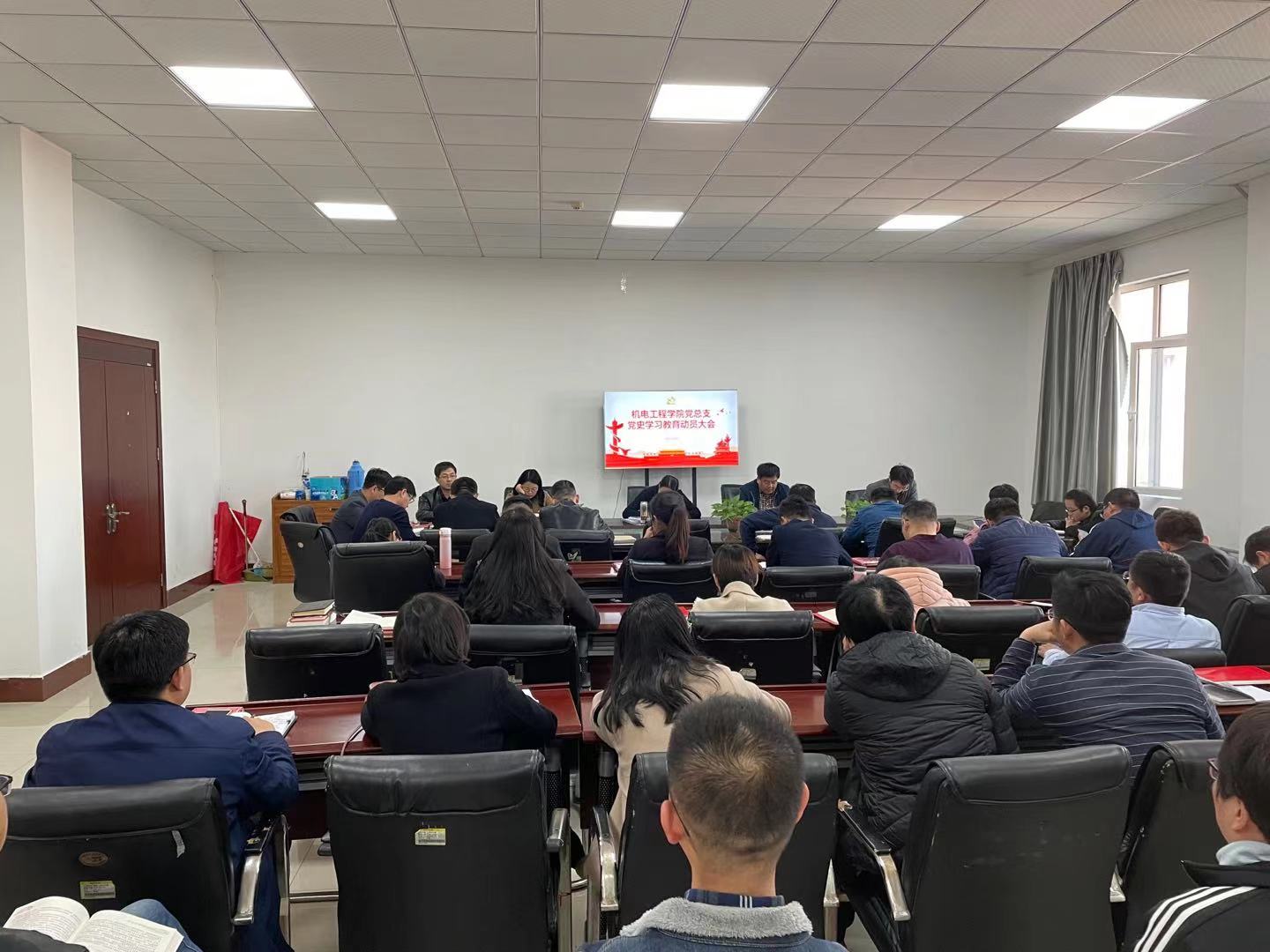 3月30日下午,机电工程学院在工程训练中心会议室召开党史学习教育动员大会,学院党政领导班子成员、全体教职工参加会议。