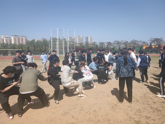 为进一步丰富校园文化生活,增进班级凝聚力,培养学生健康运动理念,4月19日下午1:30,机电工程学院于田径场组织举办拔河比赛,机电工程学院2020级全体班级参加,辅导员刘云龙、韩娇娇到场助威。