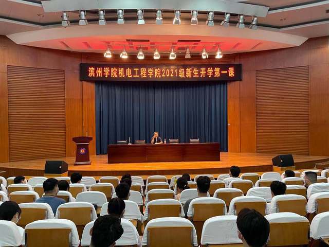 宋立军从学校的发展历程、校区分布、办学定位、二级学院设置、师资力量、办学成果、专业建设、人才培养、创新创业、学生就业、社会评价等方面对学校作了详细介绍。他提到,当今世界正面临百年未有之大变局,既充满机遇,也存在挑战。人工智能、量子信息、生物技术等新一轮科技革命和产业变革正在积聚力量,催生出大量新产业,不断推进社会发展。机电工程学院作为滨州学院发展较成熟的工科学院,重视智能制造发展、高新技术突破,重视技术型和知识型人才的培养,符合当前社会趋势的发展和需求。在建党百年之际,希望同学们面对挑战、重任在肩,志存高远、刻苦学习,用自己的实际行动和艰辛努力成就美好未来。
