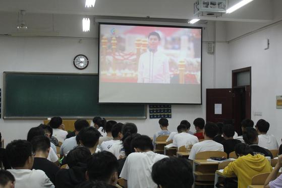 为深入学习贯彻习近平总书记“七一”重要讲话精神,引导青年学生进一步坚定“四个自信”,自觉践行“请党放心、强国有我”誓言,9月29日晚7点35分,机电工程学院于八教组织观看齐鲁大讲堂·开学第一讲。本次活动由机电工程学院全体同学参加。