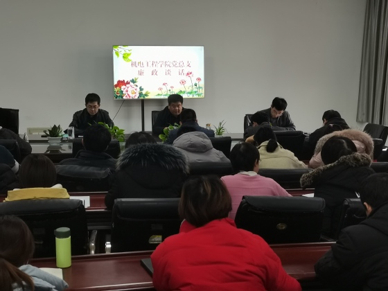 为进一步落实学院领导班子成员“一岗双责”责任,加强对干部党员教师的教育、管理和监督,促进党风廉政建设责任制落实和党员干部廉洁从政,12月14日,学院党总支书记王丕琢分别与班子成员、党支部书记、科级以上干部、辅导员以及教研室主任进行了谈心谈话。