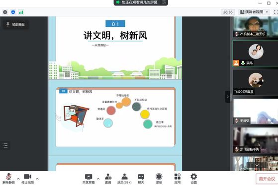 班会上,各年级辅导员结合爱国卫生月活动,从讲文明,树新风、铸健康,多运动、守绿色,重环保三大部分,倡导同学们文明举止,健康生活,养成等良好生活习惯。辅导员老师呼吁学生们多出去运动,不要总是活在网络里,要合理饮食,保持身体健康。会议最后,辅导员老师希望同学们自觉践行“绿水青山就是金山银山”的环保理念,提倡同学们进行垃圾分类,多使用环保用品。