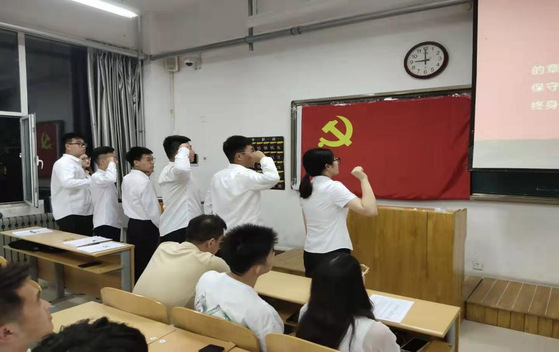 会议严格按照接收预备党员流程进行。会上,各党员发展对象向大会宣读了入党志愿书,阐述自己对党的认识,入党动机,现实表现及其他问题,并表明自己的入党决心。各入党介绍人分别就各党员发展对象进行介绍和评价。学生第一党支部韩娇娇对发展对象发表意见并报告政治审查情况,最终参会党员同志们一致认为陈功贺等15名党员发展对象符合党员发展条件,同意接受15名党员发展对象为中共预备党员。