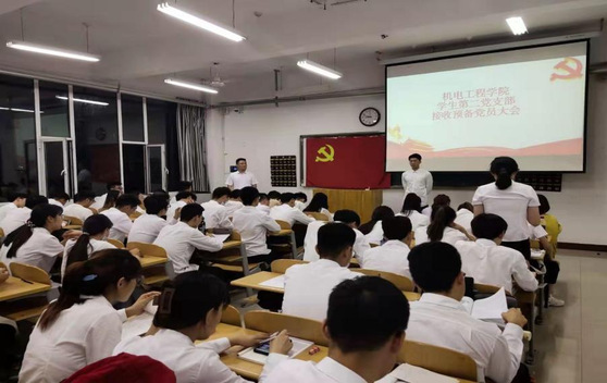 为进一步加强党员队伍建设,吸收新鲜血液,2022年6月15日,机电工程学院在8教101 召开接收预备党员大会,机电工程学院学生党支部书记、正式党员、15名发展对象参加了会议,会议由学生第二党支部书记刘云龙同志主持。