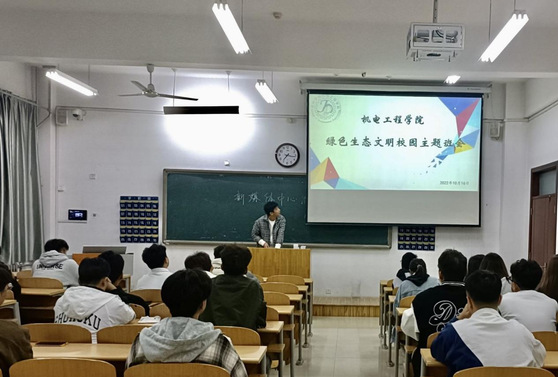 为进一步引导机电工程学院广大青年学生学习贯彻习近平总书记“绿水青山就是金山银山”的习近平生态文明思想,传承绿色校园文化,加强建设绿色学校,提高我院学生的集体意识和绿色发展理念,我院各班于10月16日晚在各教室召开以“践行绿色发展理念,共建美好绿色校园”主题班会。