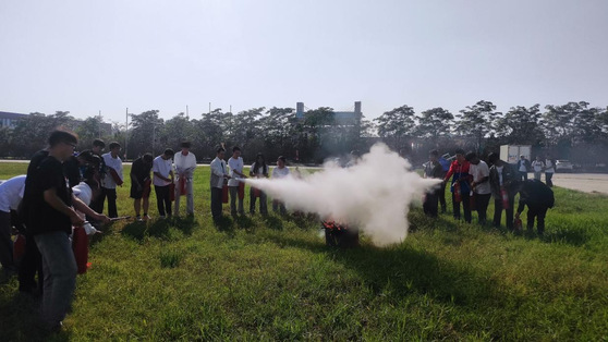 随后,全体师生参与了紧张而有序的消防演练。在专业人员的指导下,学生们亲自操作灭火器,体验了扑灭初期火灾的过程。此外,培训中还模拟了火灾现场的疏散演练,师生们按照预定的疏散路线快速、有序地撤离到安全区域,有效地提高了大家的紧急疏散能力和自我保护意识。